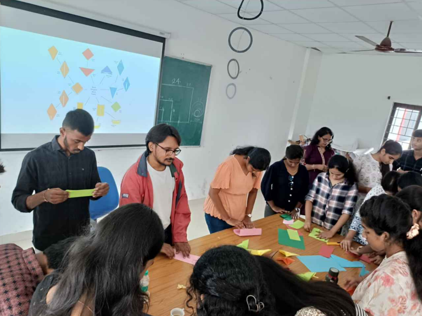 The workshop began with a brief introduction by Ar. Sai Teja, who shared insights into how origami relates to architectural design. He explained how the geometric principles and folding techniques used in origami can inspire and inform architectural forms, structures, and spatial configurations. Ar. Sai Teja also highlighted examples of famous architectural works influenced by origami, such as the use of folding techniques in modern facades and temporary structures.